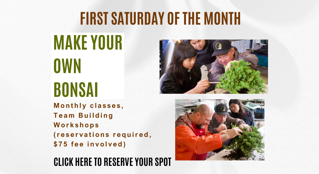 Join us on the first Saturday of every month for hands-on bonsai classes that connect art, nature, and mindfulness. Whether you’re an individual eager to learn or an organization seeking a unique team-building experience, our classes offer something different—an inspiring way to step outside the usual routine and grow together.