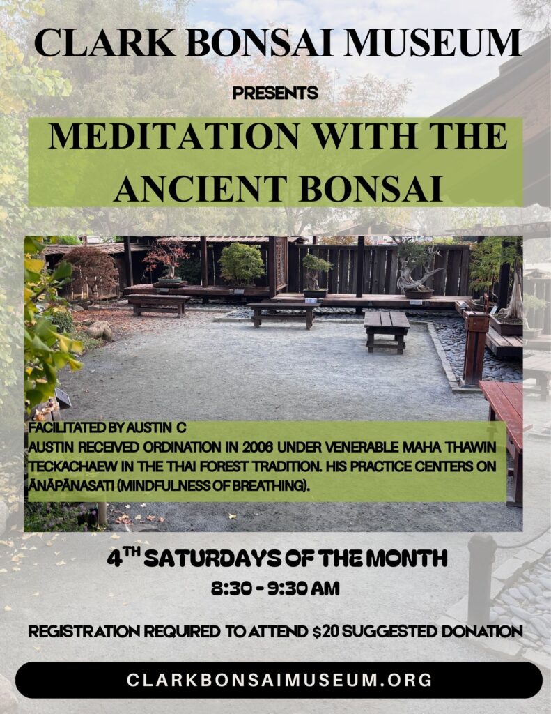 A guided outdoor mindfulness session centered on breath awareness, held among ancient bonsai. Open to beginners and experienced meditators alike, offering a restorative pause in a peaceful garden setting.